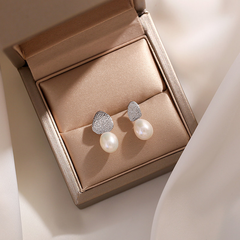 Natural freshwater pearl earrings drop-shaped 8-9mm glare flawless 925 sterling silver earrings earrings for mother gift