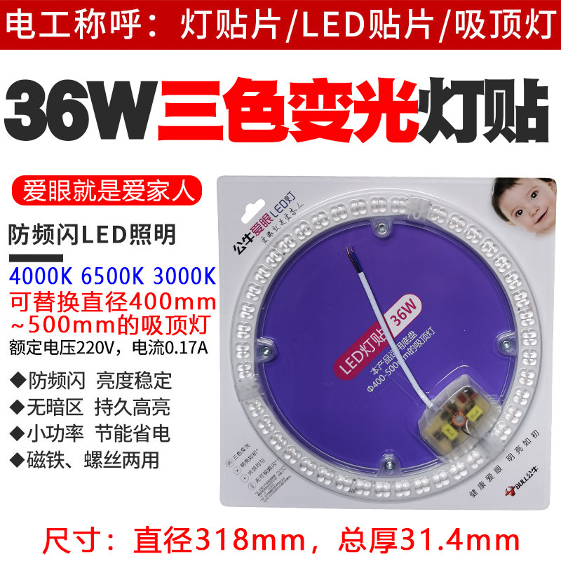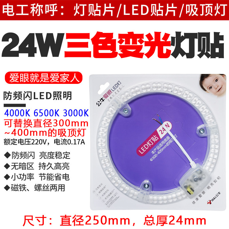Bull tricolor anti-strobe LED light sticker ceiling lamp wick round oblong lamp bead bulb strip
