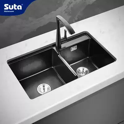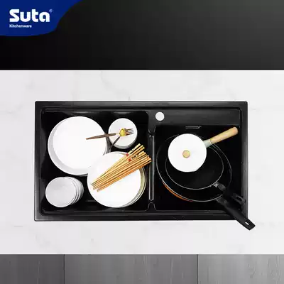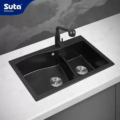 Shunta high-end kitchen quartz stone sink double sink sink sink sink sink sink thick basin table top Basin