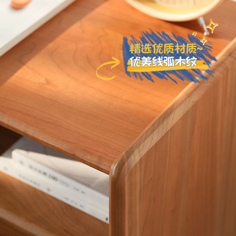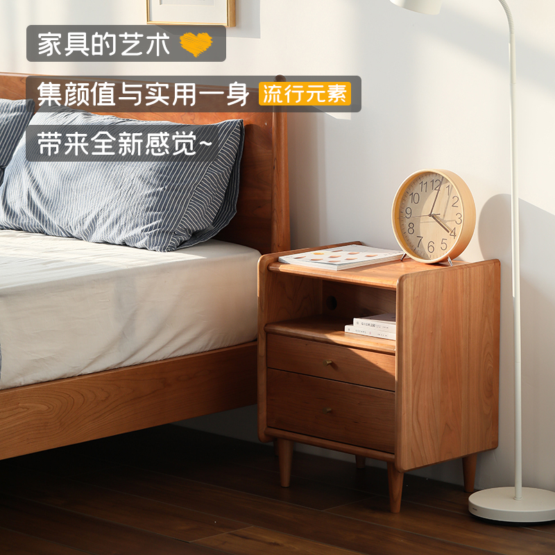 Cherry wood bedside table solid wood modern minimalist ins style furniture rack Japanese bedside table all solid wood