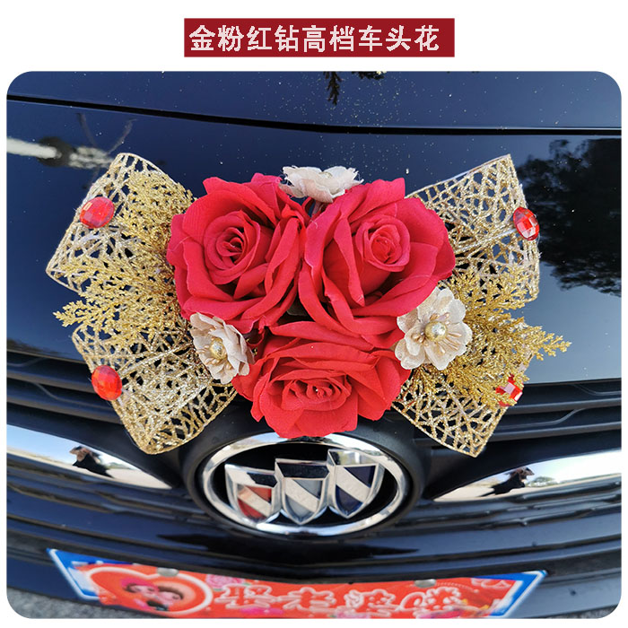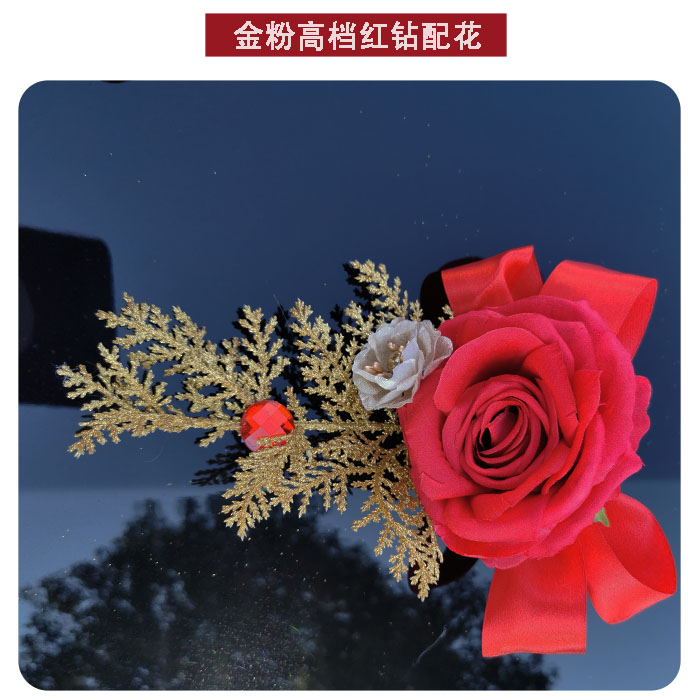 Silk screen rose - double rose with flowers 1 silk screen rose - front and rear decoration 1 silk screen rose) - mirror door handle decoration 1 silk screen print sub-car set, set of gold dust, front flower 1 sapphire, front flower, ruby front flower, white gemstone front flower, white pearl front flower, red diamond gold powder with flower, single ribbon with flower, 1 gold powder flower