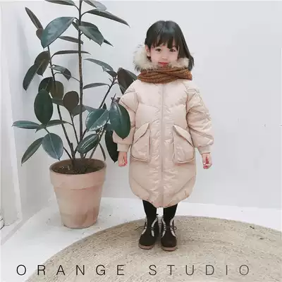 Orange children's clothing 90 white duck down temperament Korean girl big hair collar down jacket children's coat
