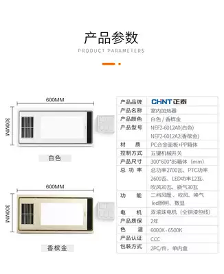 Chint heater bath integrated ceiling lighting heater exhaust fan Integrated Household dressing room multi-function heating