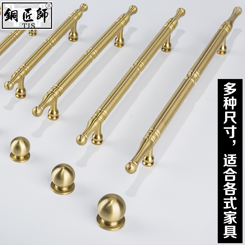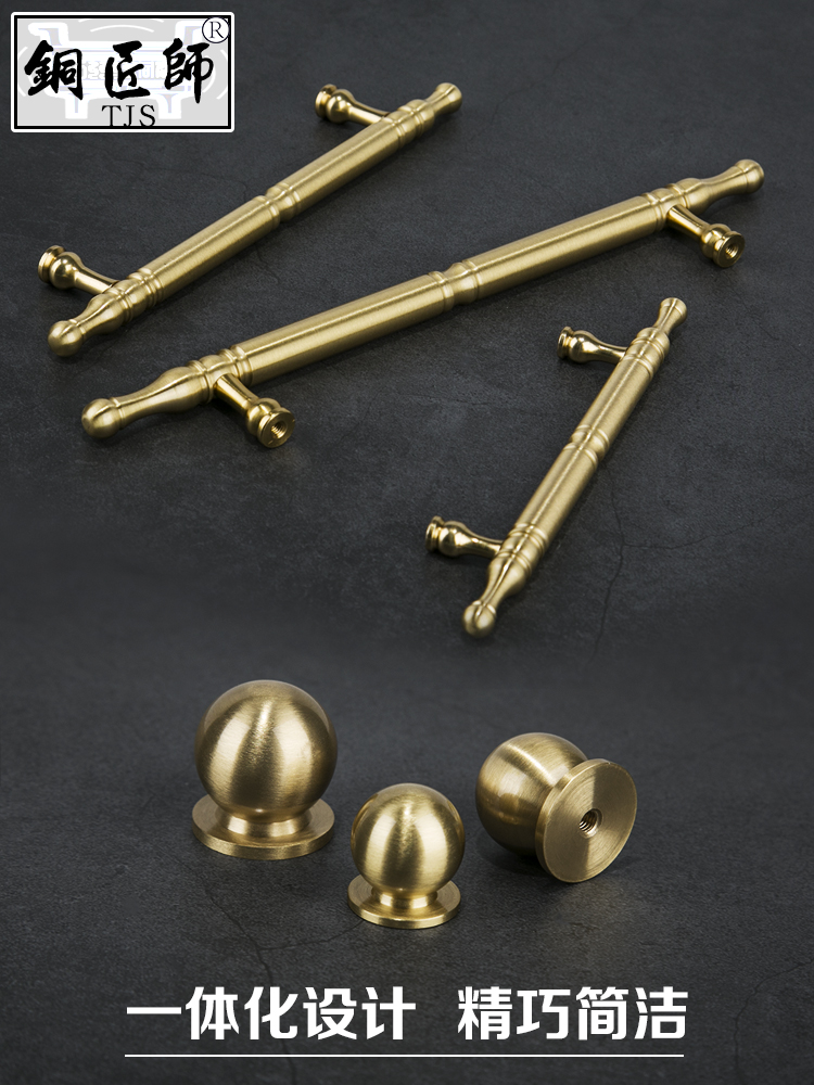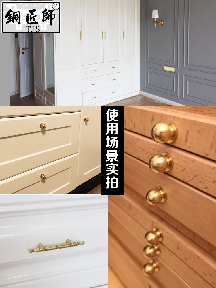 Pure copper cabinet door handle modern simple Nordic American whole cabinet wardrobe drawer light luxury gold single hole brass handle