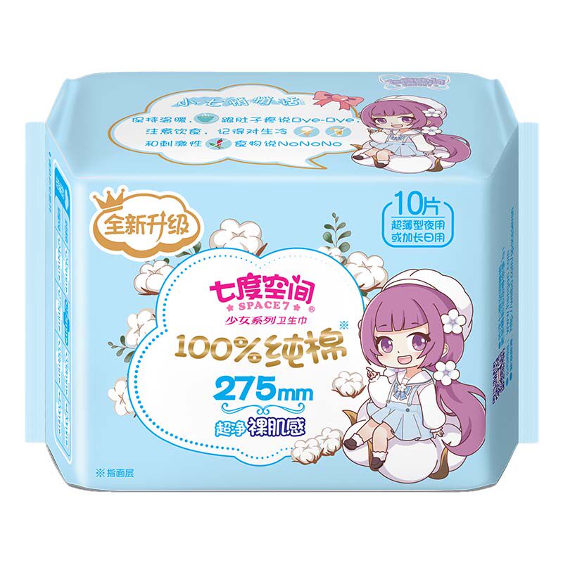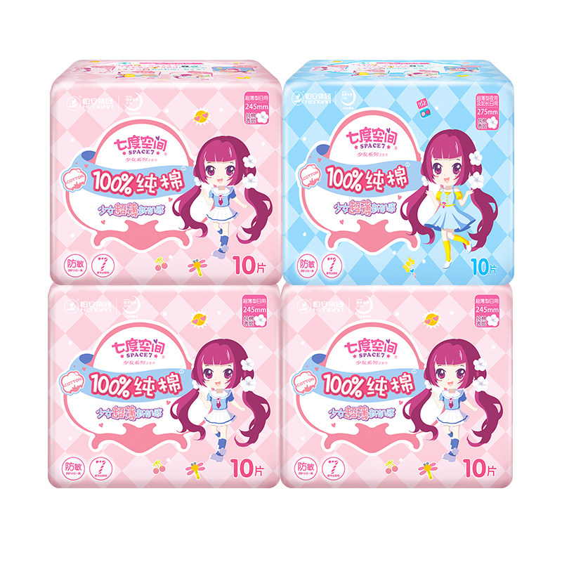 Seven degrees of space sanitary towel aunt towel girl series pure cotton ultra - thin day and night with whole box wholesale 4 packs combination