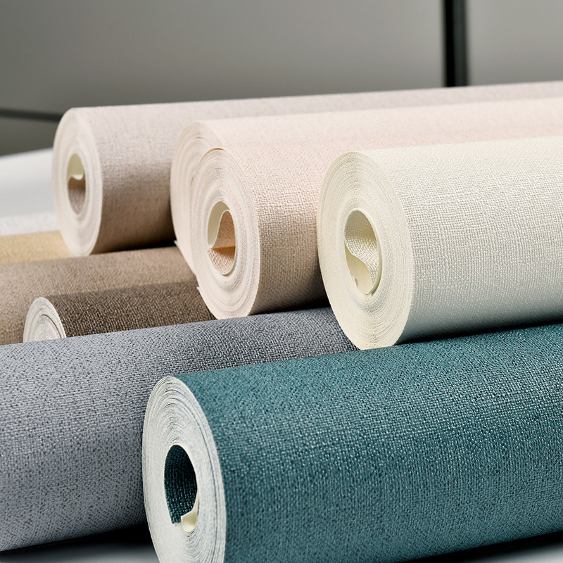 Modern simple plain wallpaper Japanese linen pattern Bedroom study Dining room Living room full of solid color wallpaper waterproof