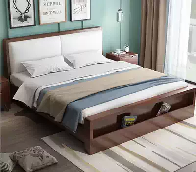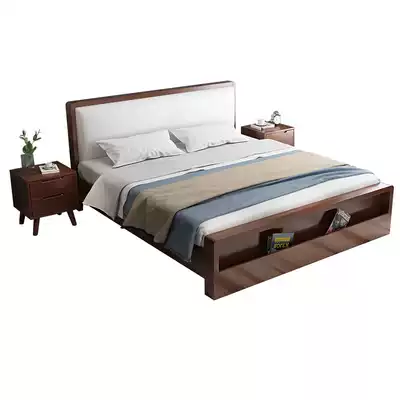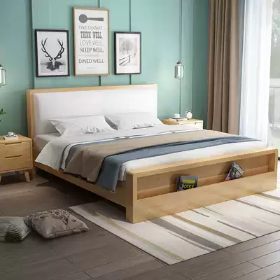 Nordic solid wood bed soft backrest 1 8 m double bed oak double bed rental house apartment bed bag installation
