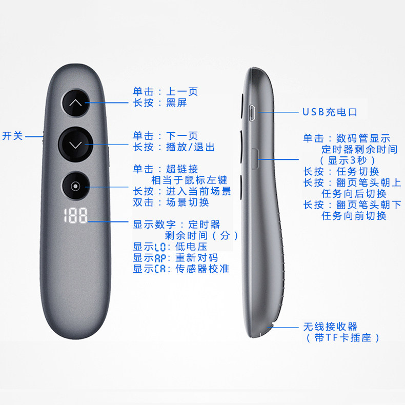 Page turning pen teacher charging with wireless projection pen led screen zoom focus multifunctional universal ppt remote control pen