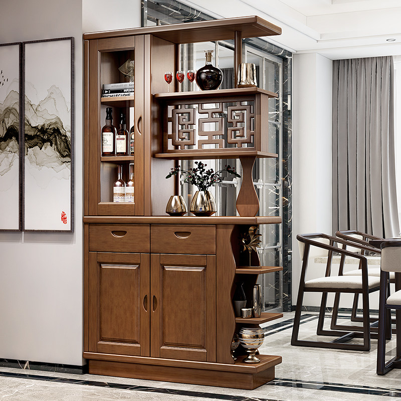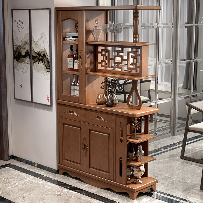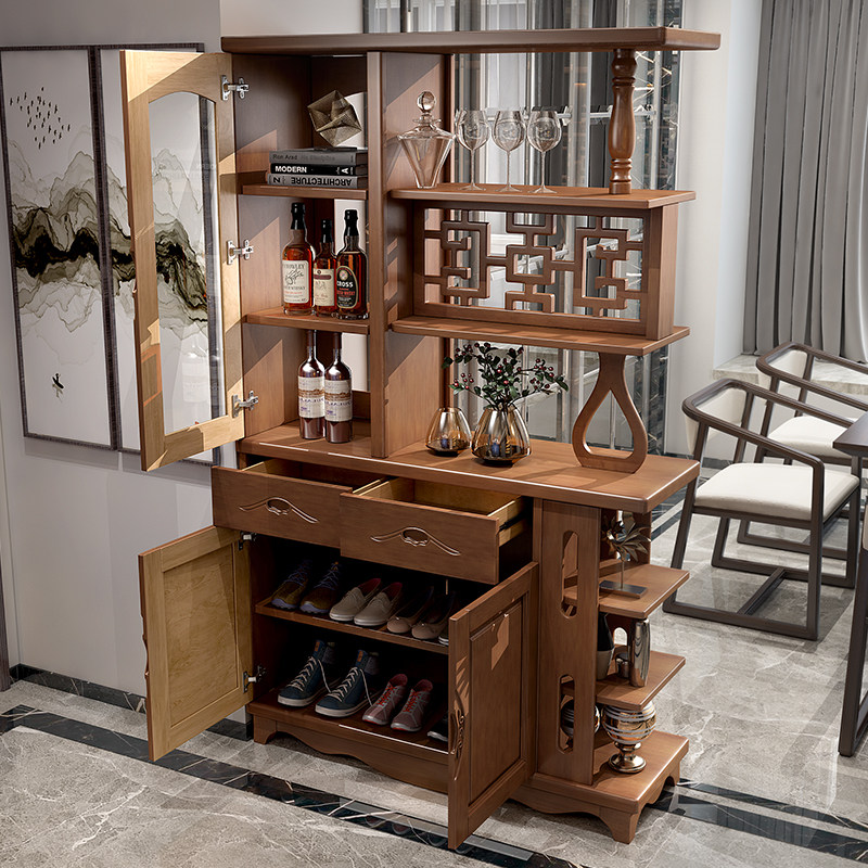 Foyer solid wood double-sided partition porch cabinet 1 m 1 2 hall cabinet Chinese-style living room wine cabinet screen shoe cabinet decorative cabinet