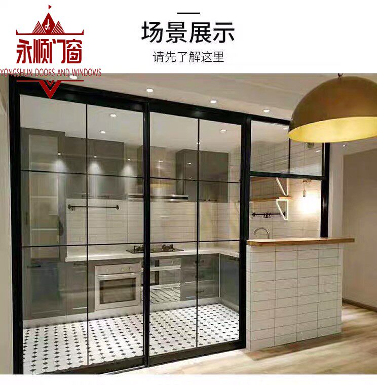 Narrow Side Kitchen Makeup Room Balcony Partition Titanium Magnesium Aluminum Alloy Double Tempered Glass Pendant Wheels Sliding Door