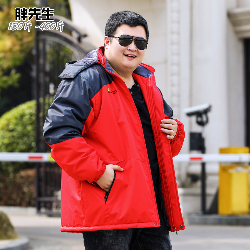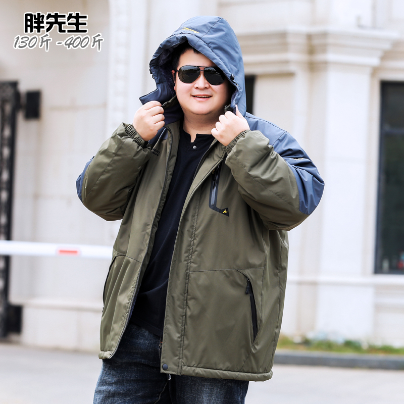 Men's plus size plus size autumn and winter jacket fat man outdoor plus velvet thickened jacket fat guy windbreaker plus fat