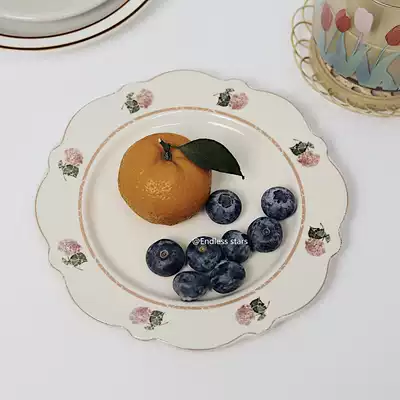 ES) ins retro country style floral side ceramic plate French cake plate fruit plate Western plate dessert