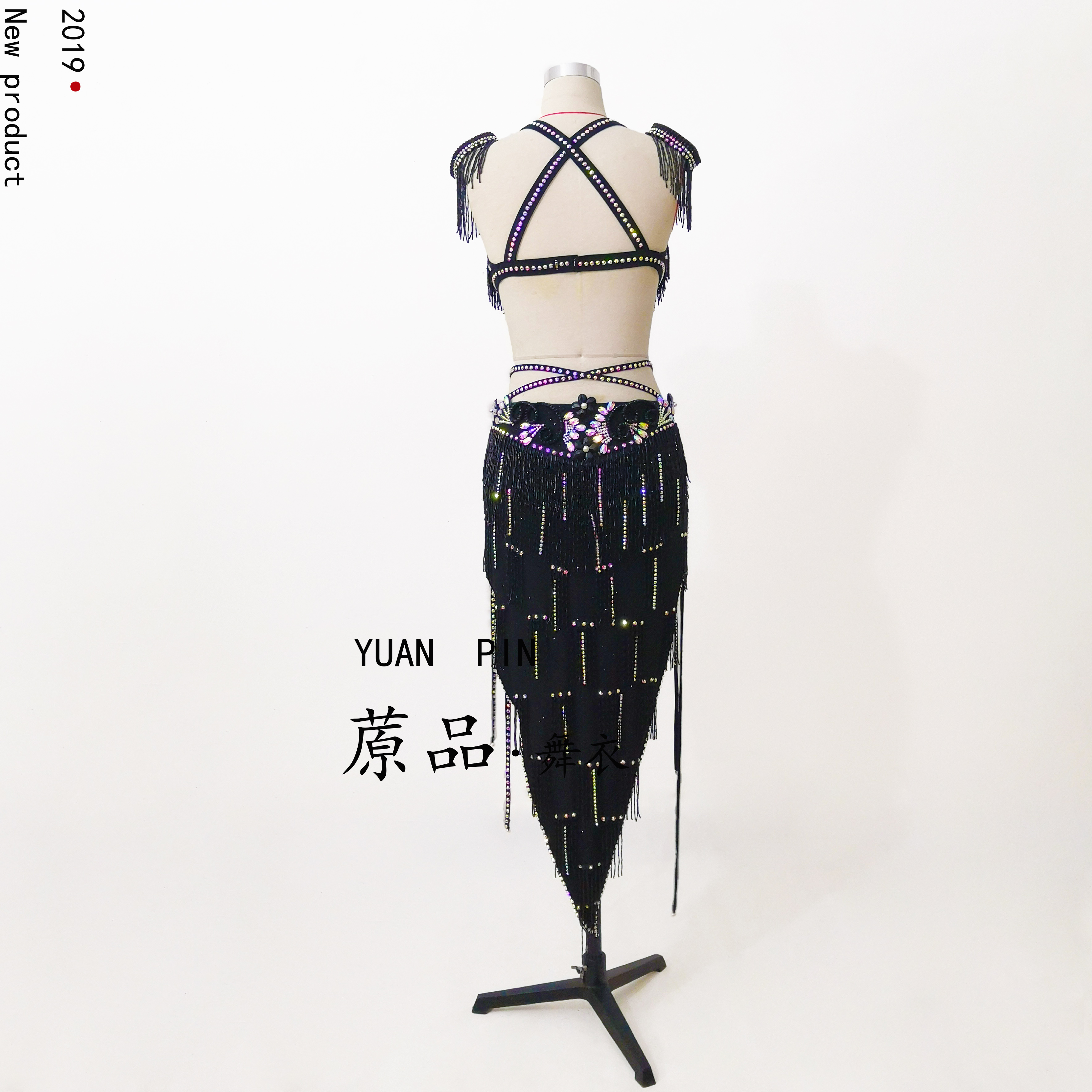 Belly dance inspired to play the competition suit upscale custom rework suit with string bead flow Su adding water to drill the flow Su
