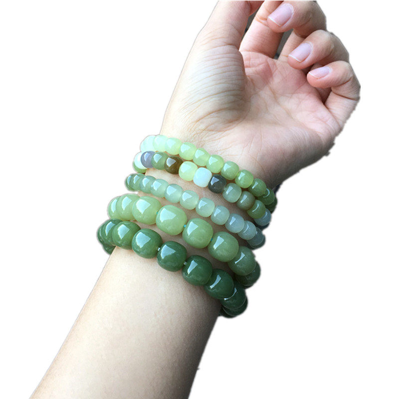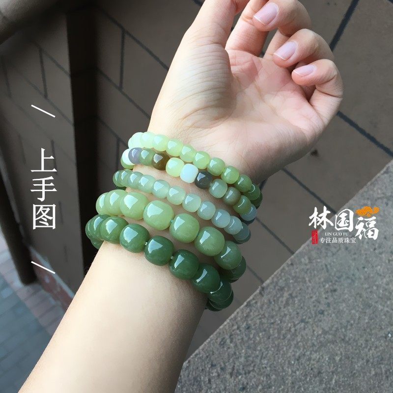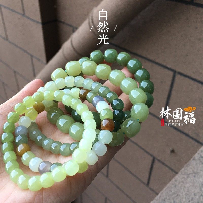 Lin Guofu High quality multicolor and field jade old type beads hand-made, green duck egg turquoise gradually layer color yellow mouth stock