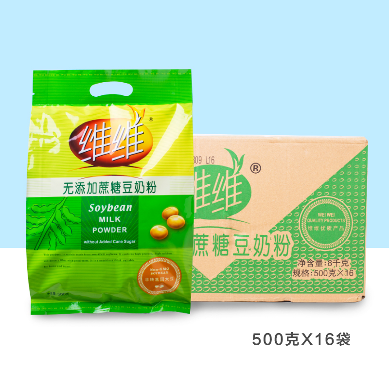 Weiwei no added sucrose soy milk powder 500g whole box 16 packs of nutritional high calcium breakfast soy milk food