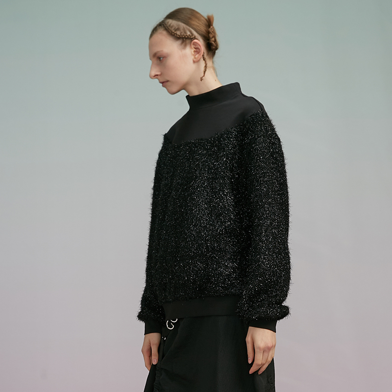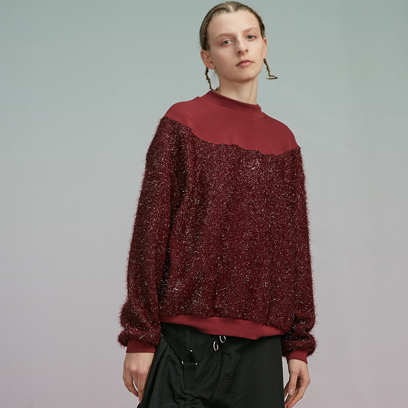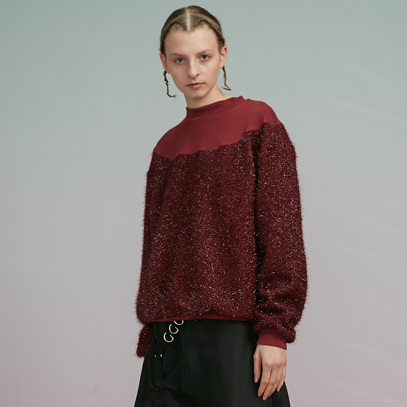 DIDDI MODA Original design autumn and winter half high collar bright silk sweater women's flashy knit bottom sweater