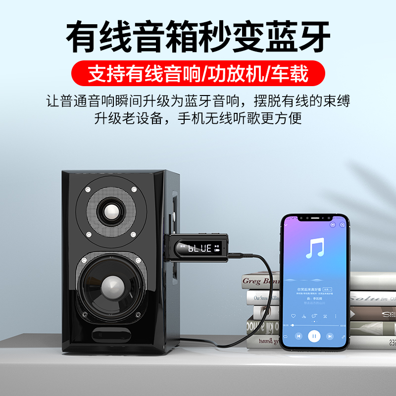 USB Bluetooth audio receiver 5 0 conversion speaker loud power amplifier car load FM Play in wired headphones Wireless Aux double-output desktop PCs TV transmitters Dispensaint-free