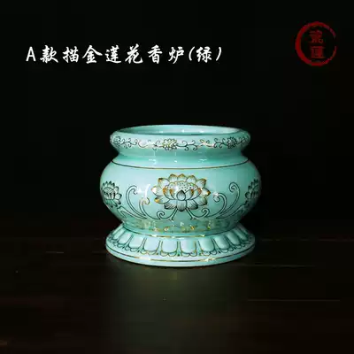 A gold-painted lotus incense burner for the front of the Buddha Household ceramic indoor Buddha incense stick incense room Gong Feng Guanyin small burning