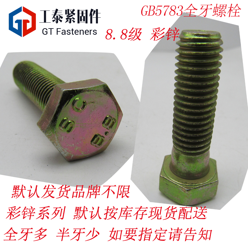 Color zinc outside hexagonal bolt m6m8m10 High strength yellow zinc screw 8 grade national standard half tooth full tooth screw