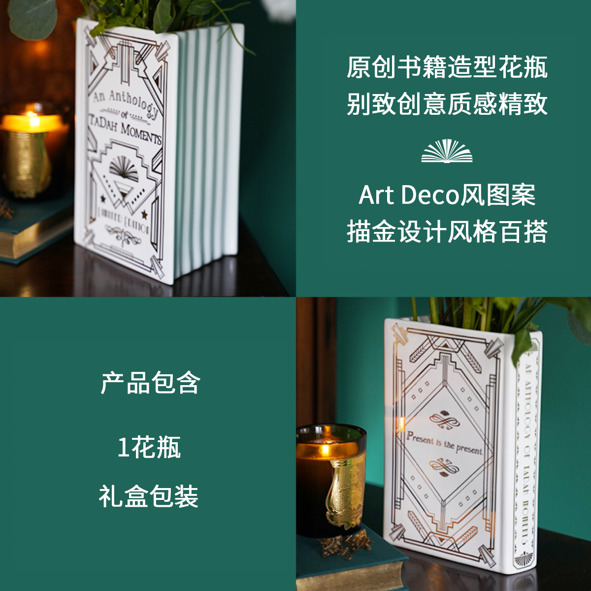 (TaDah suddenly) original design Art Deco style book vase birthday newlywed Valentine's Day gift