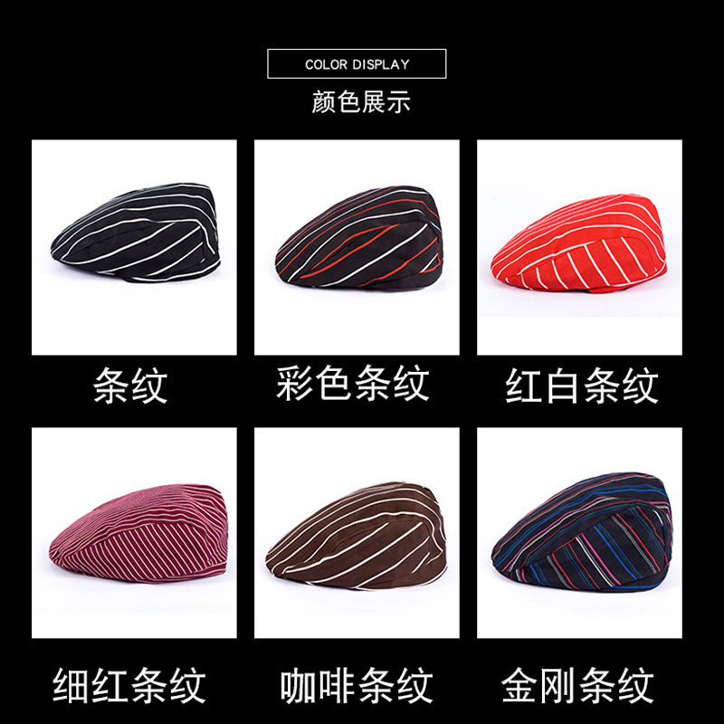 Striped beret Dark coffee breathable beret Striped breathable beret Plaid breathable beret Black red-rimmed beret Red and white striped beret Light coffee breathable beret Breathable red