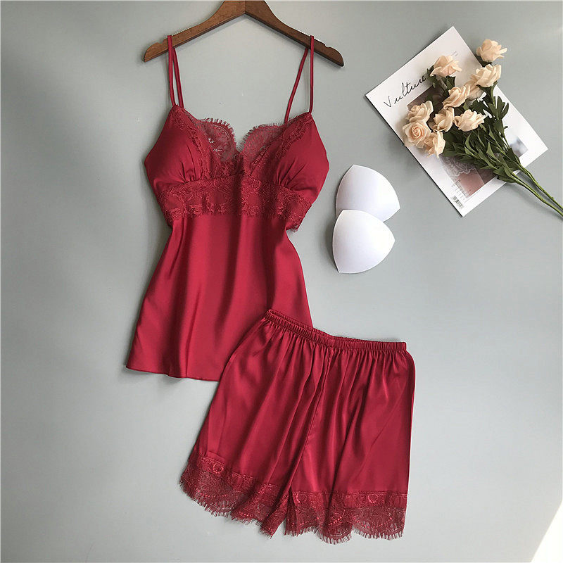 Sexy backless pajamas women Xia Bing silk suspenders shorts two-piece set with chest pad small chest gathered spring and autumn can be worn outside