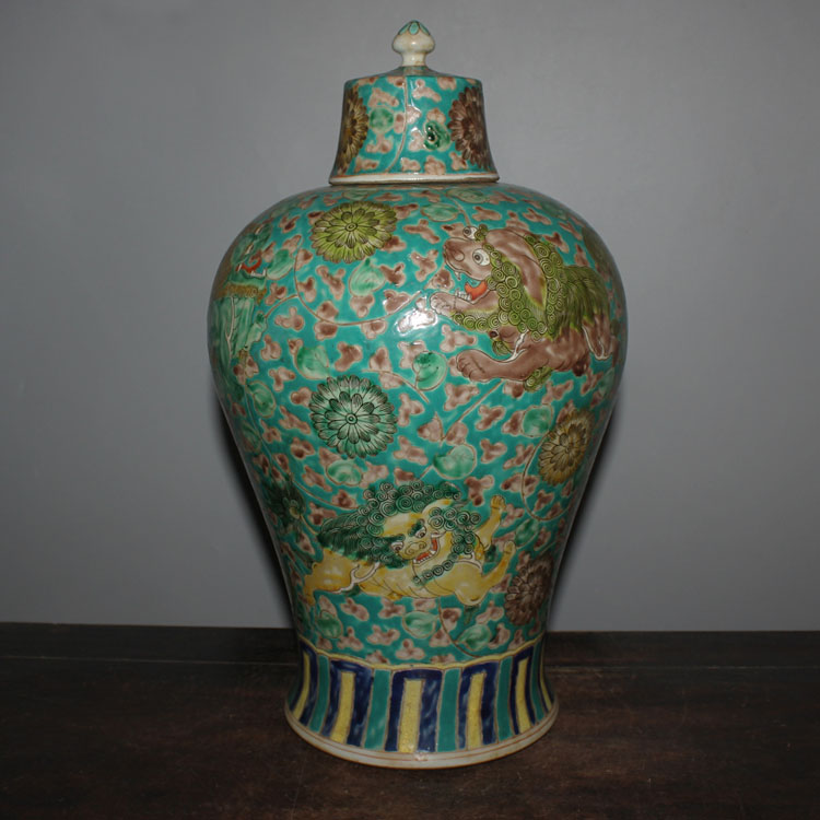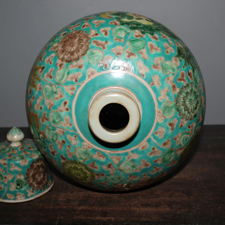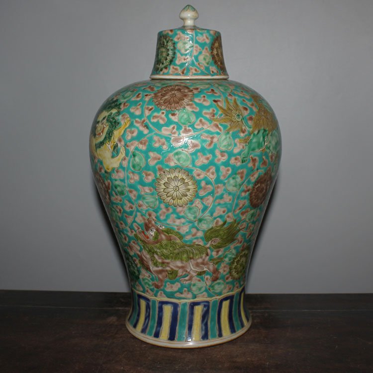 Jingdezhen Qingpowder Pink Lion Flowers Plum Bottle Wine Bottle Glaze color with lid Fill in the leather green flowers and ancient fun Antiquity