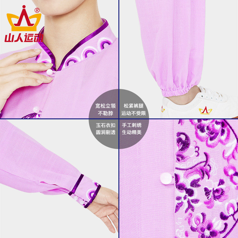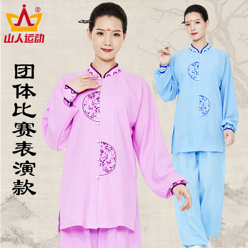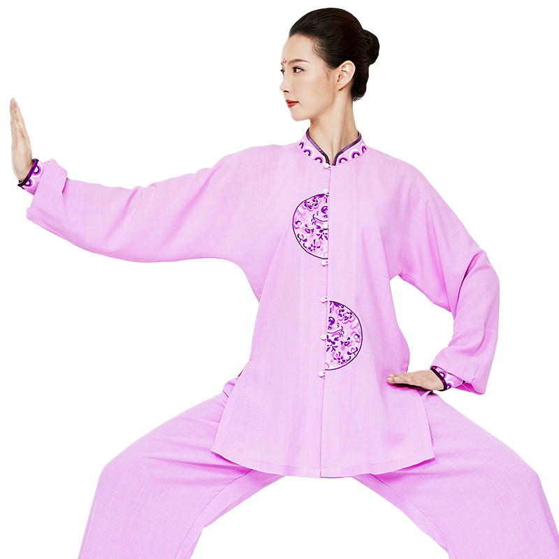 Spring Autumn New Cotton Linen Embroidery Tai Chi Clothing Women's Team Competition Performance Serve Martial Arts Taijiquan Style Martial Practice Suits