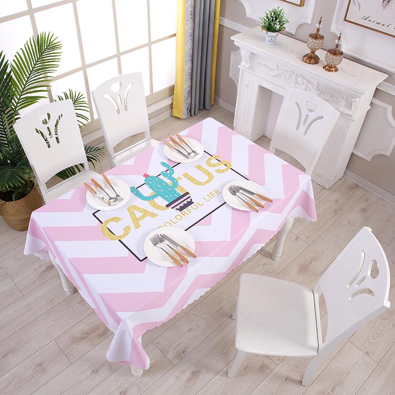 HAPY Waterproof Table Cloth Green Leaf Waterproof Tabby Cactus Potted Waterproof Table Cloth Cute Teen Heart Waterproof Table Cloth Happy Rabbit Waterproof Tableclotch Waterproof Table Cloth Raw Money With Deer Waterproof Table Cloth White Frame