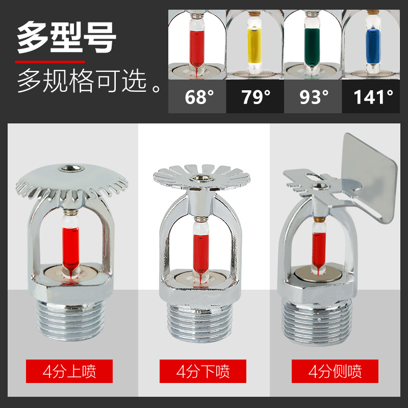 Fire sprinkler head 4 minutes 6 minutes 15 68 degrees 93 degrees 141 degrees 79 degrees concealed sprinkler dark installation on the spray down spray side spray