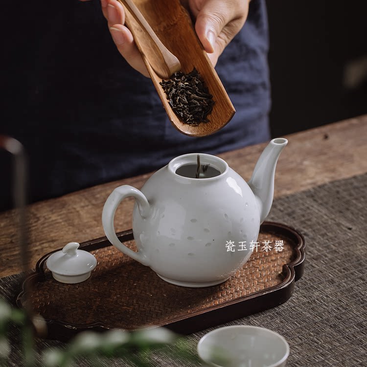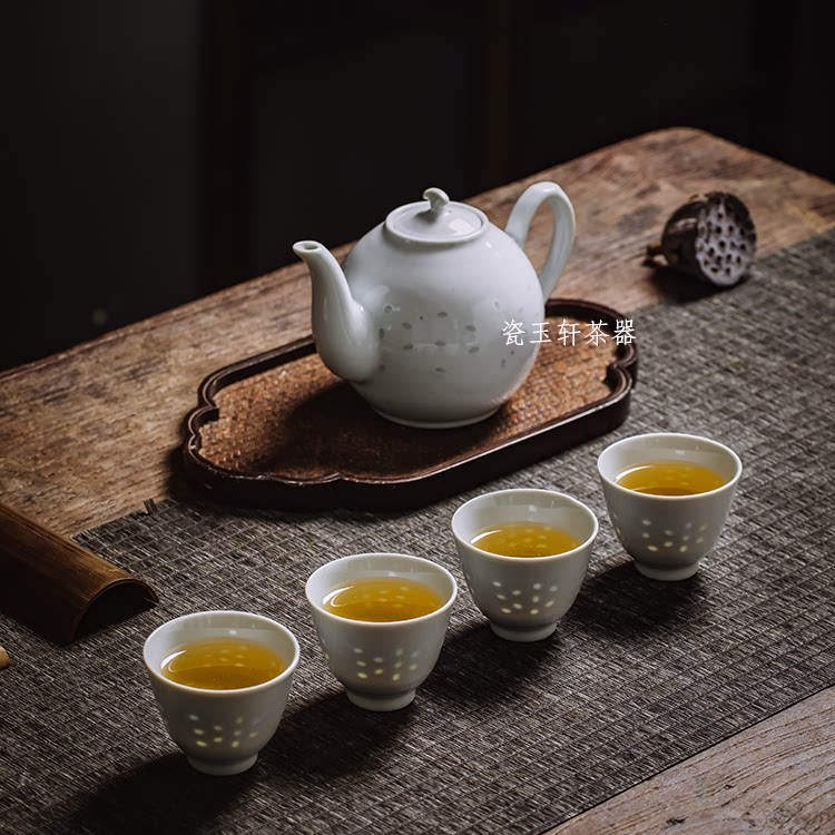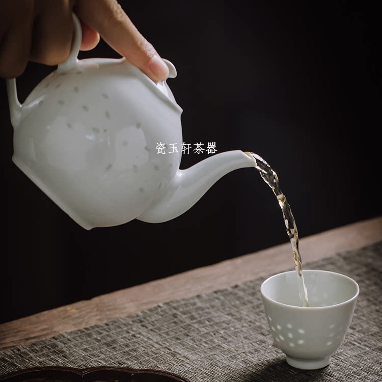 Jingdezhen Porcelain Yuxuan Ceramic tea set In the 1970s Guangming Porcelain Factory White Linglong grapefruit pot Teapot fidelity package old