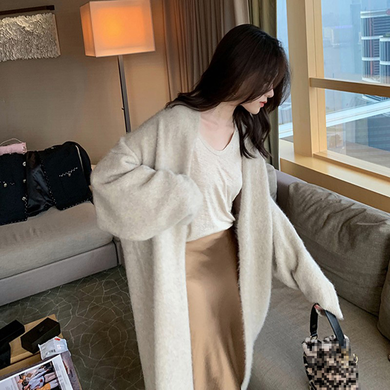 Wool medium long version knit cardiovert women's spring clothing Lazy Casual Outlap Thickened Cashmere Sweater Over Kneecap Sweater Jacket