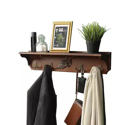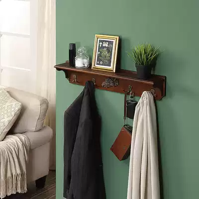 American solid wood partition shelf Wall Flat partition log coat rack wall hanging Nordic hook hanger