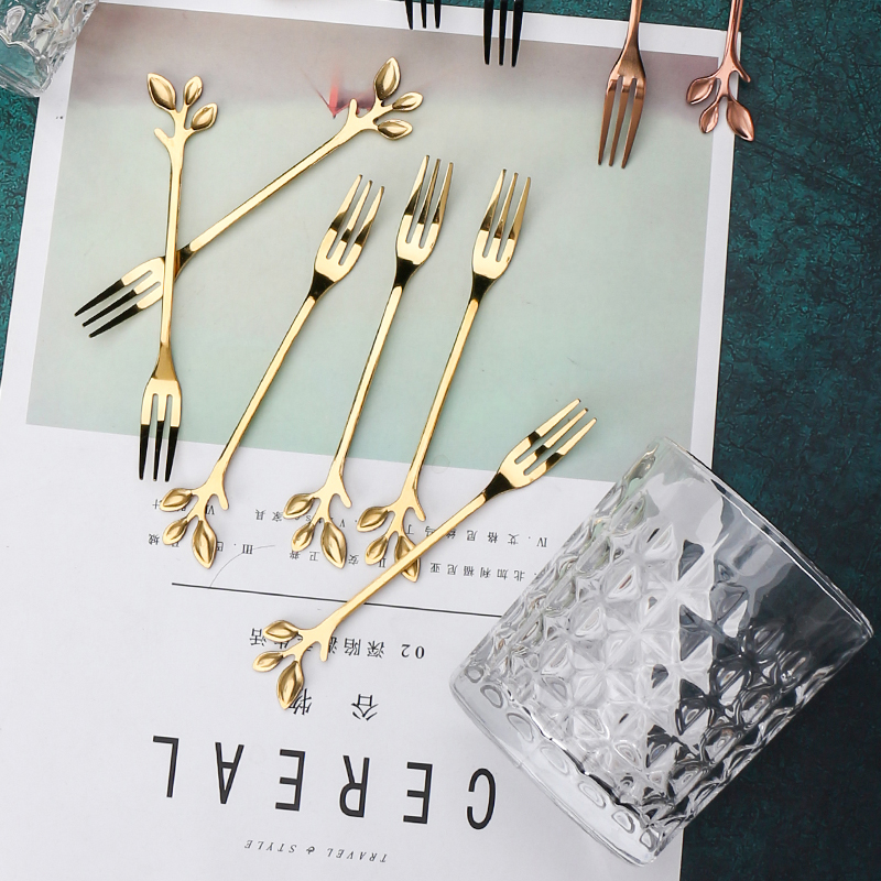 Leaf fruit fork suit light extravagant INS small fork Home European style cake fork stainless steel fruit sign sweet pitchforks-Taobao