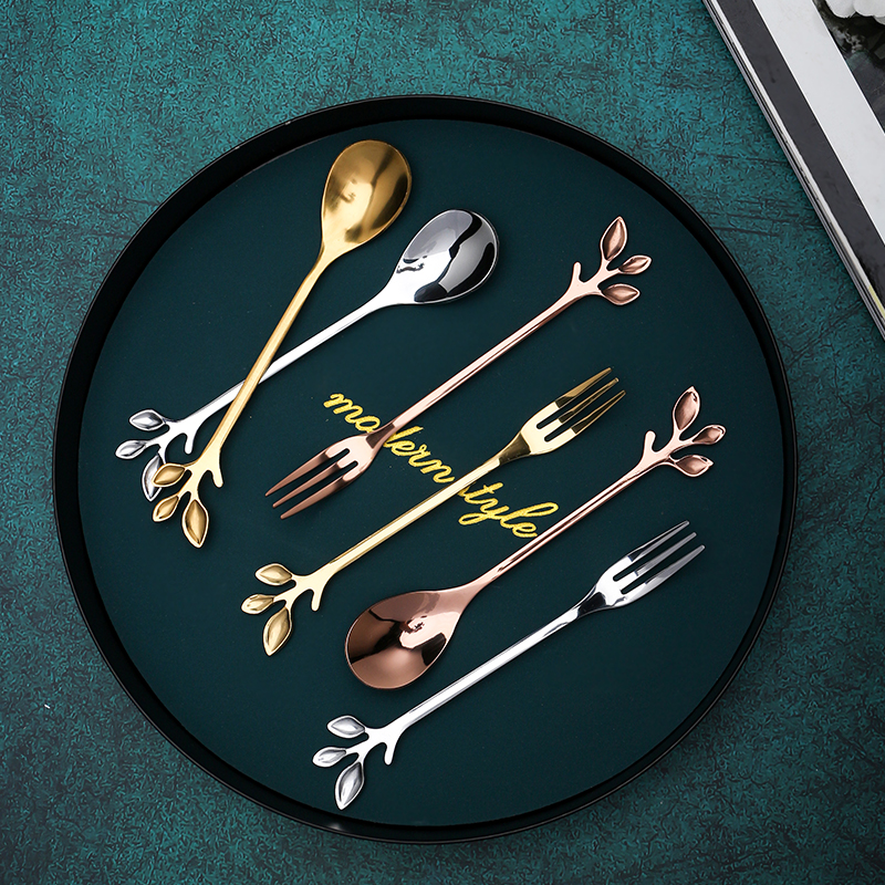 Leaf spoon-golden (6-load) leaves fork-gold (6-load) leaves spoon-rose gold (6 clothes) leaves fork-rose gold (6 clothes)