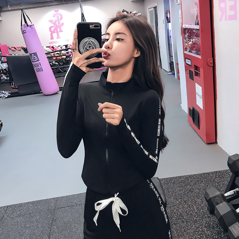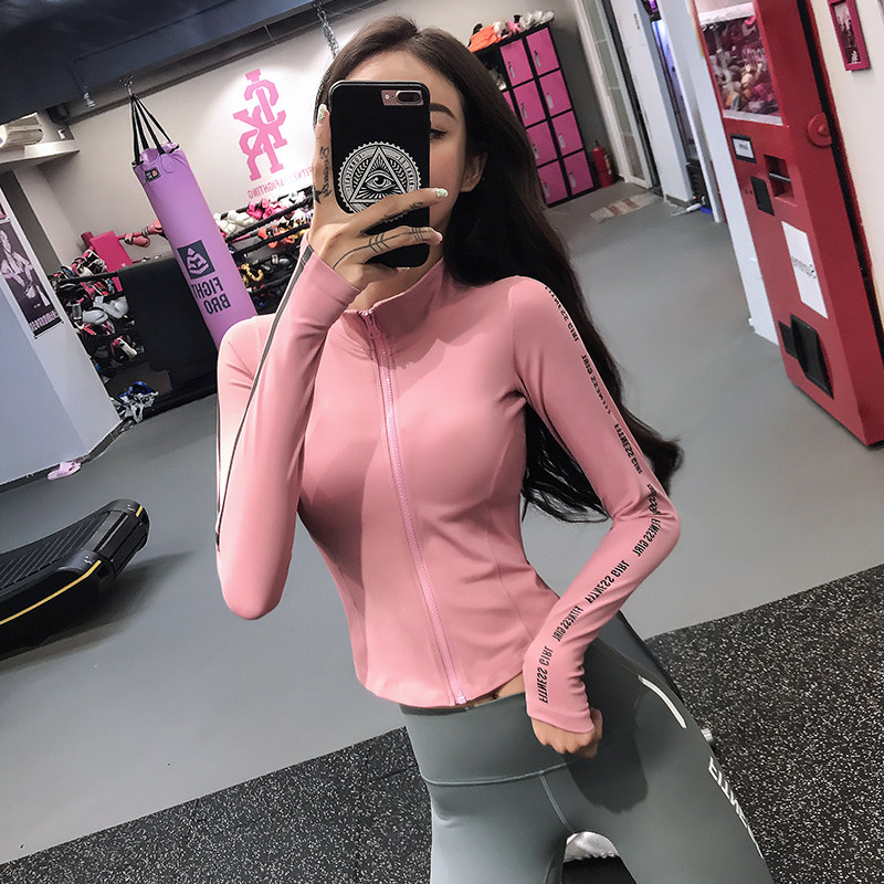 Fitness girl handsome short zipper sports jacket tight running top Elastic quick-drying yoga suit long sleeve cool