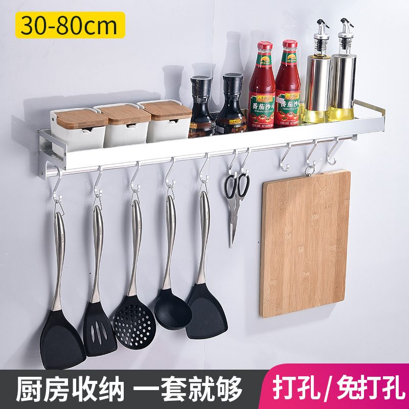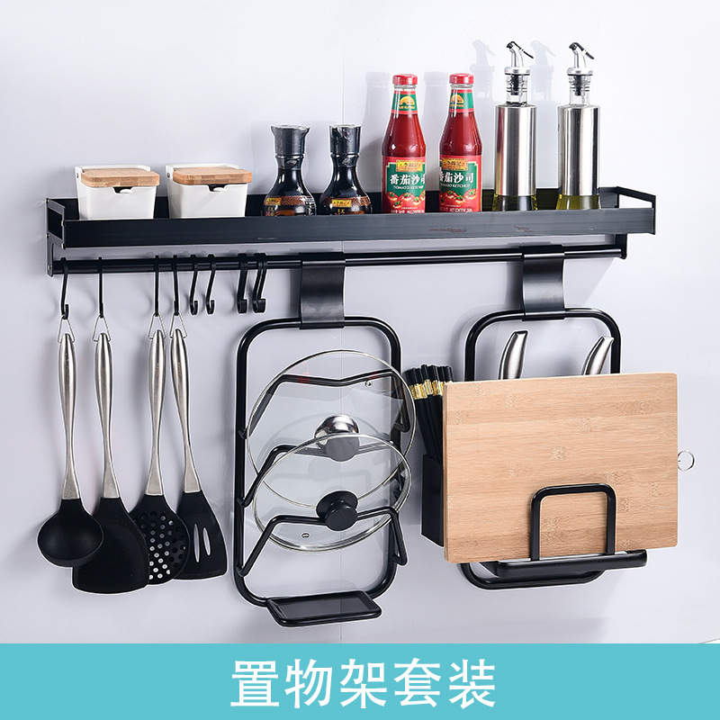 Black kitchen rack free punching wall-mounted household seasoning supplies Daquan knife rack hanger storage shelf