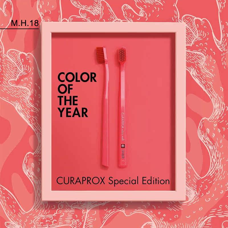 Limited edition Swiss Curaprox Corribao Coral Red CS5460 Adult Soft Hair Toothbrush Suit 2 clothes