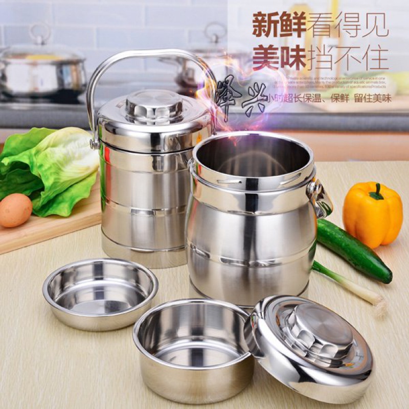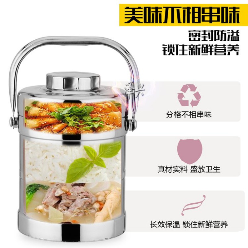 Stainless steel double insulation bento box insulation bucket Three-layer large capacity insulation carrying pot Student bento box delivery tool
