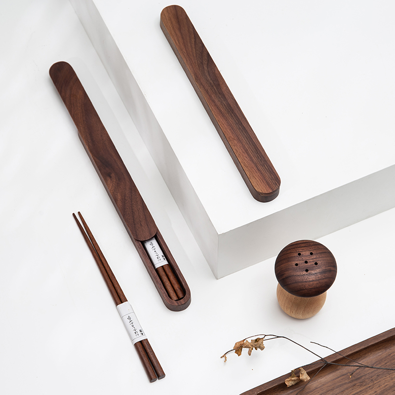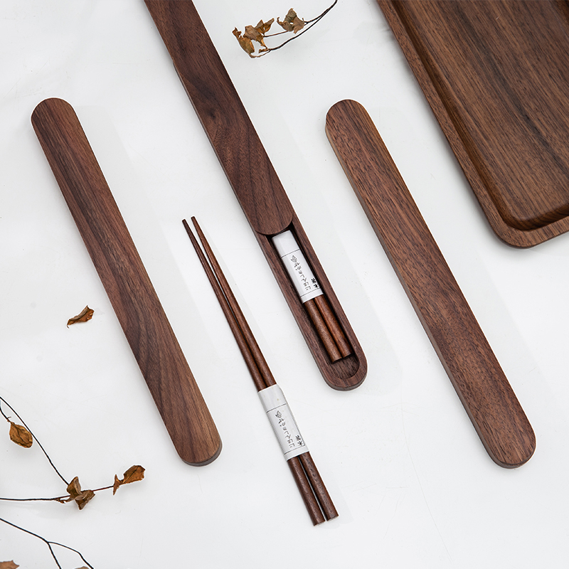 Mi Upright Wind Things Travel Chopsticks Box Portable Carry-on Box Black Walnuts Solid Wood Pointed High-grade Wood Chopsticks Single-Taobao