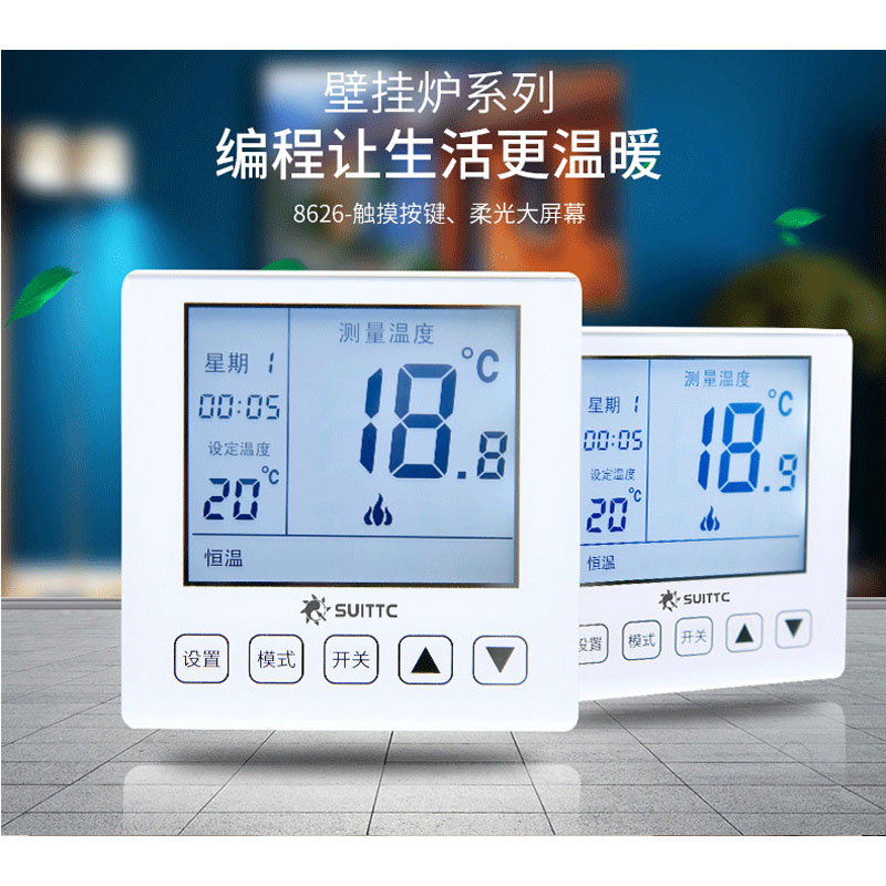 Room LCD touch screen intelligent programming plumbing gas wall hanging furnace thermostat temperature control switch control universal