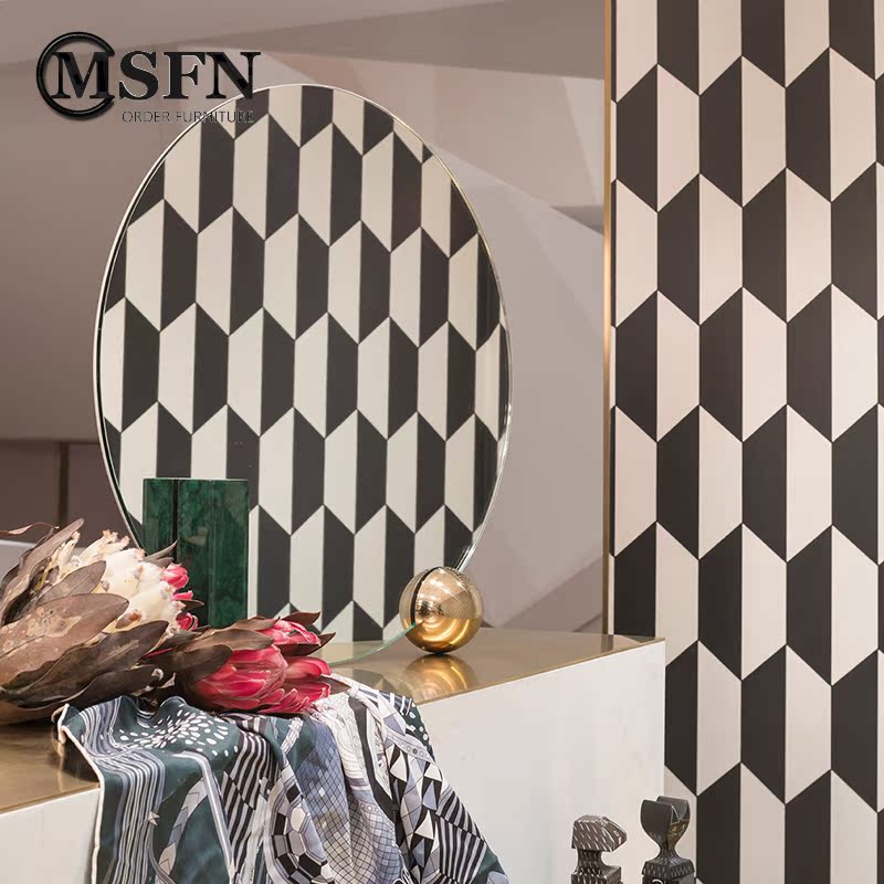 Masfino marble metal desktop makeup mirror Living room makeup table round makeup mirror Model room decoration mirror
