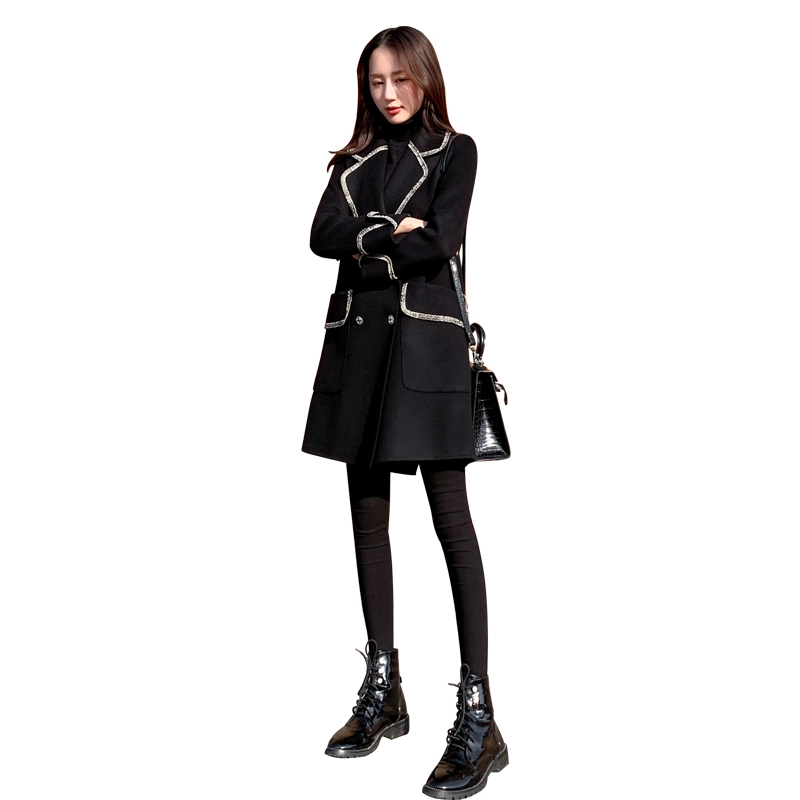 The small man's coat girl in the long 2022 Han Edition autumn and winter new black loose and thin hair coat