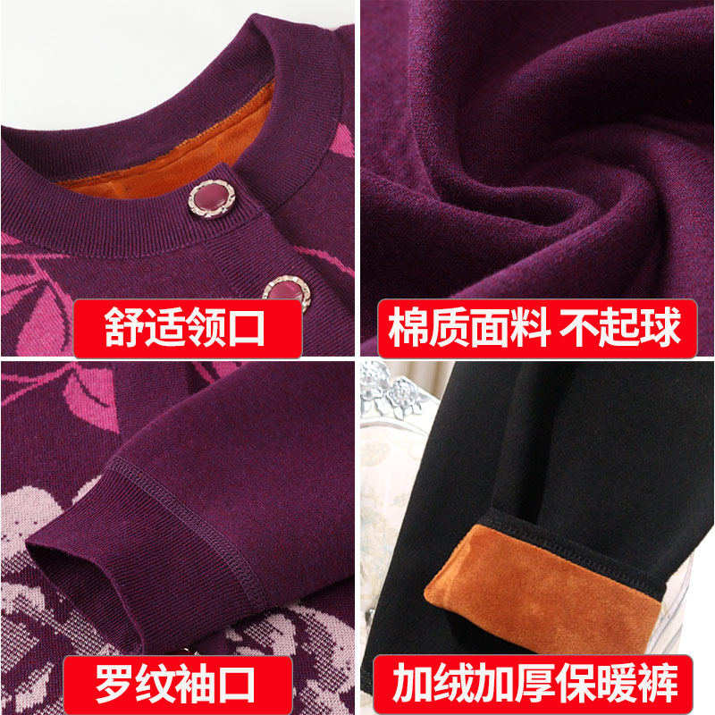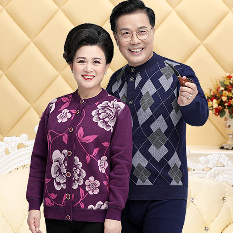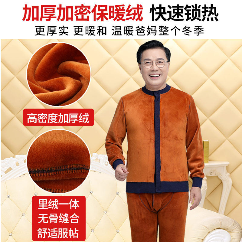Middle-aged and elderly thermal underwear men's fleece thickened women's suit can be worn outside in winter cardigan mother cardigan large size