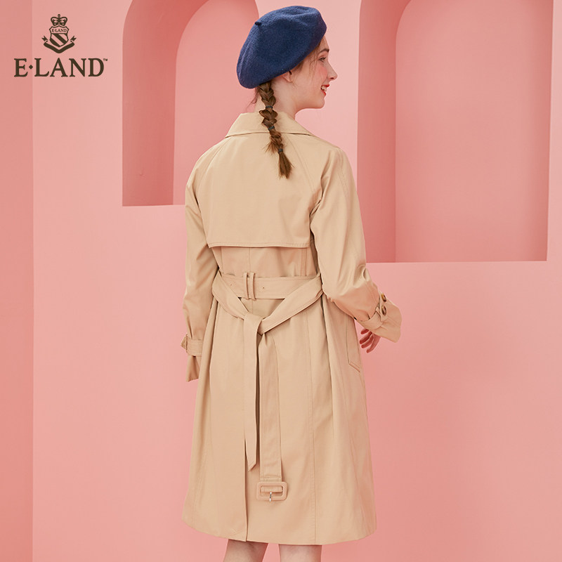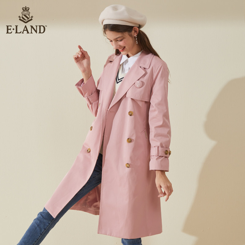 ElAND Spring and Autumn Fashion Casual Baiyu Han Cherry Powder Training Middle-Edition Winddress Lady