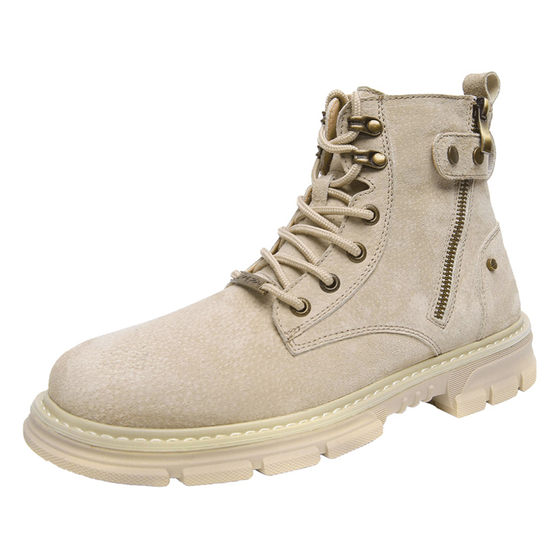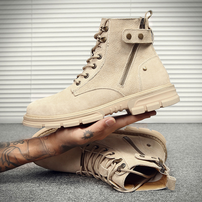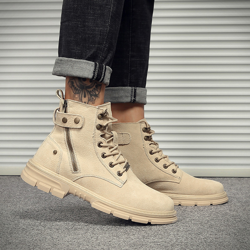 Martin boots men's mid-tube British velvet thick-soled high-top tooling boots winter men's boots leather side zipper retro boots