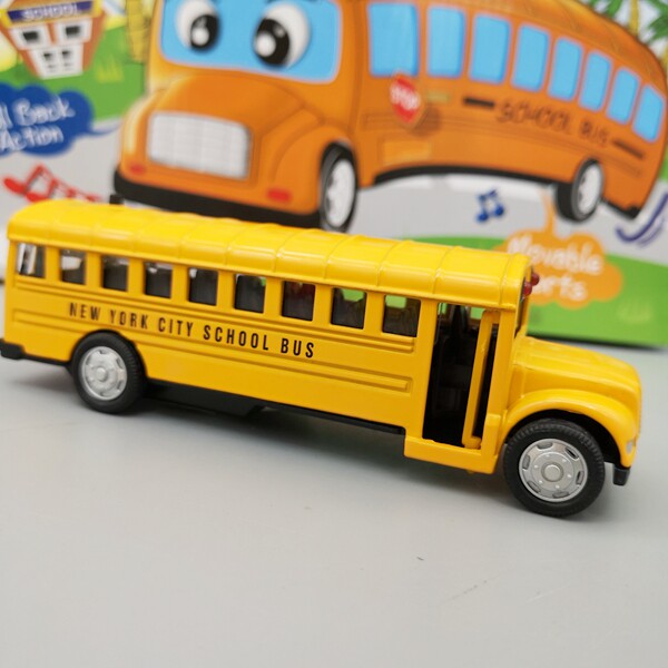 School bus model ornaments sound and light boy gift car length 13 cm door can be opened