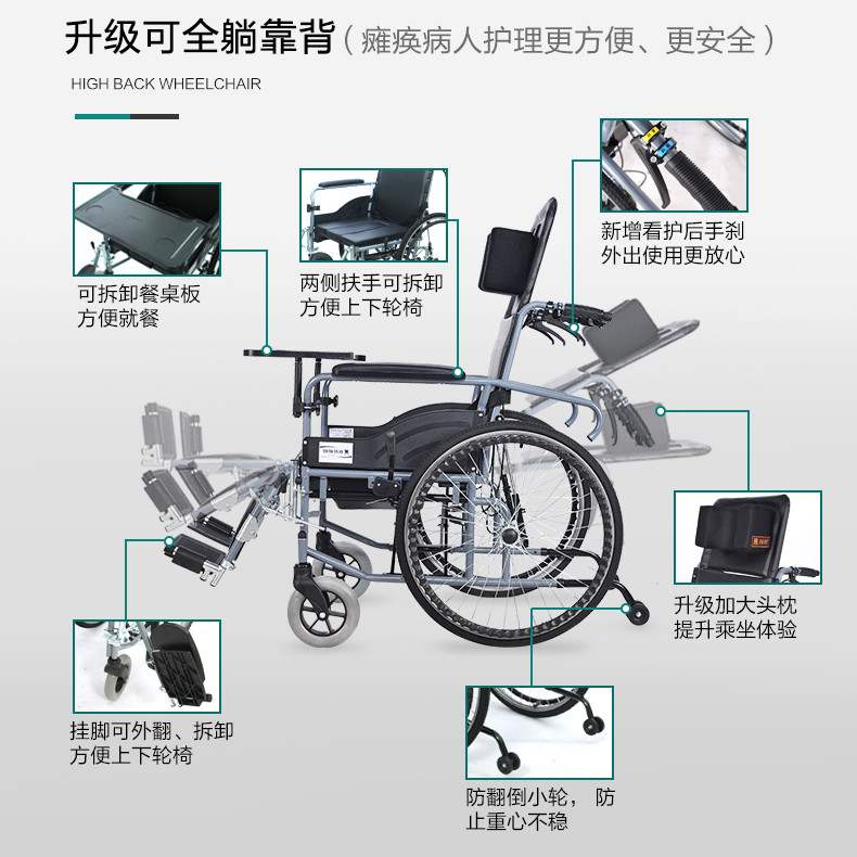 Interstate wheelchair HBG5-BFQ high backrest full-lying fold with toilet paralysed elderly adult scooter armrests detachable