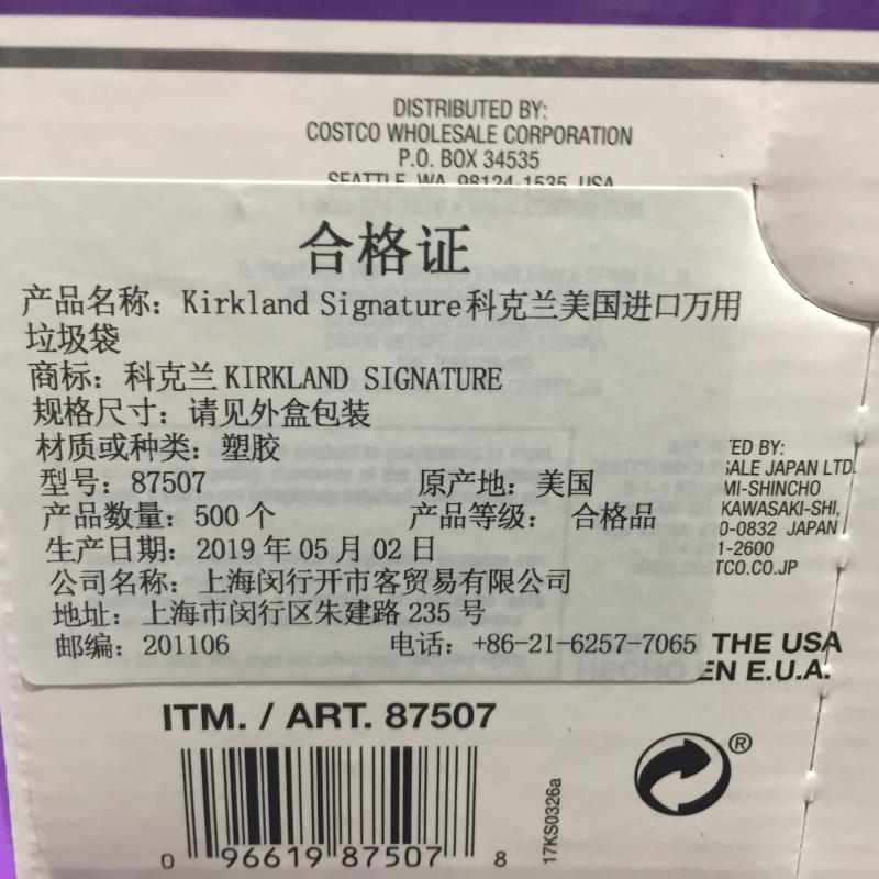 US imports KIRKLAND Kokranwan with garbage bags Shanghai Costco opener