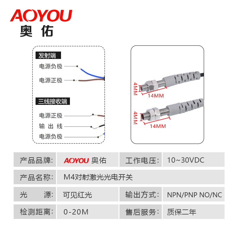M4 laser sensor infrared to radio induction switch AYJG-T04NO photoelectric visible light to shot 20 m 24V